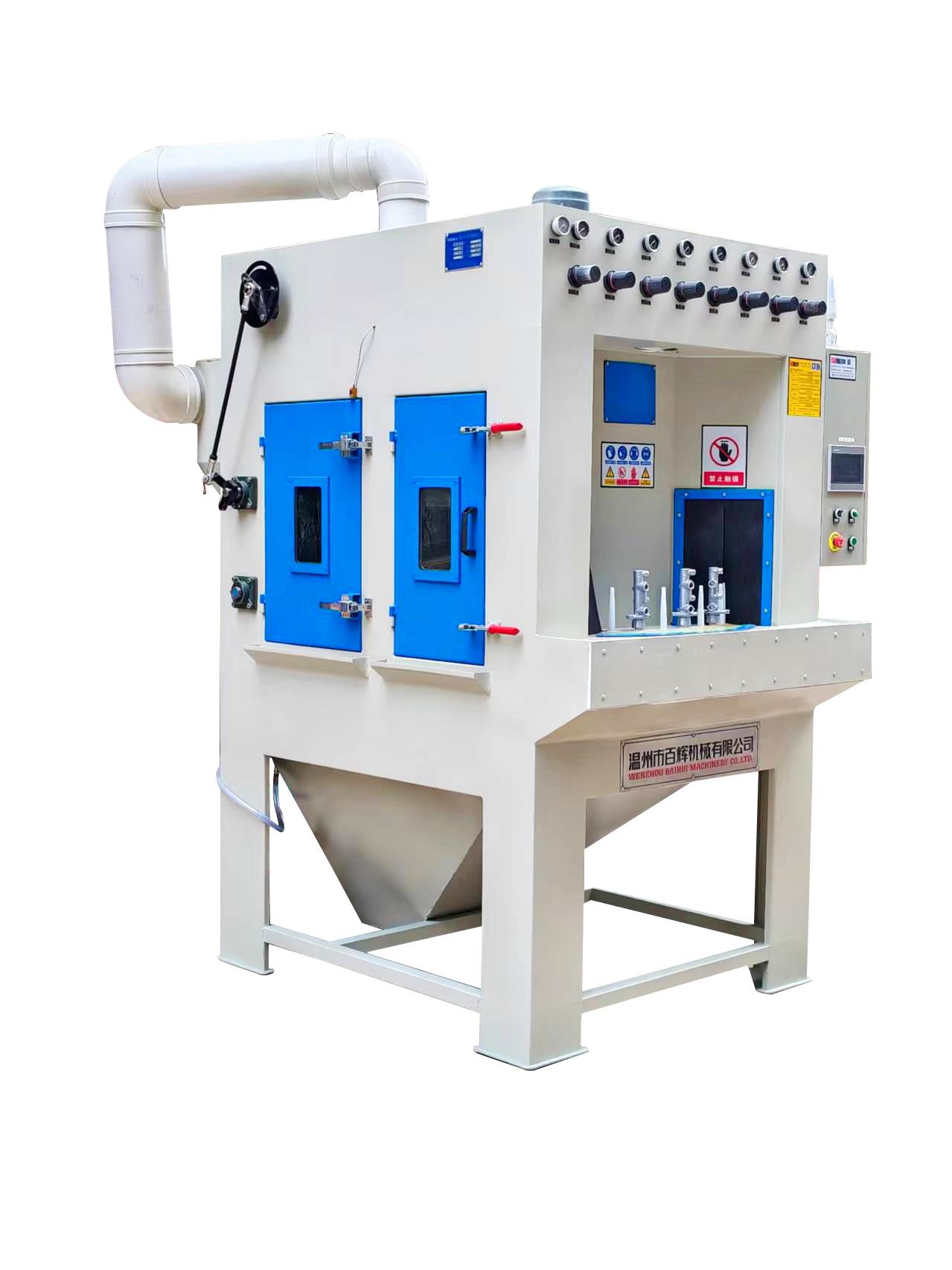 5,本機(jī)配有高效除霧風(fēng)機(jī),保證噴砂倉(cāng)視野清晰;