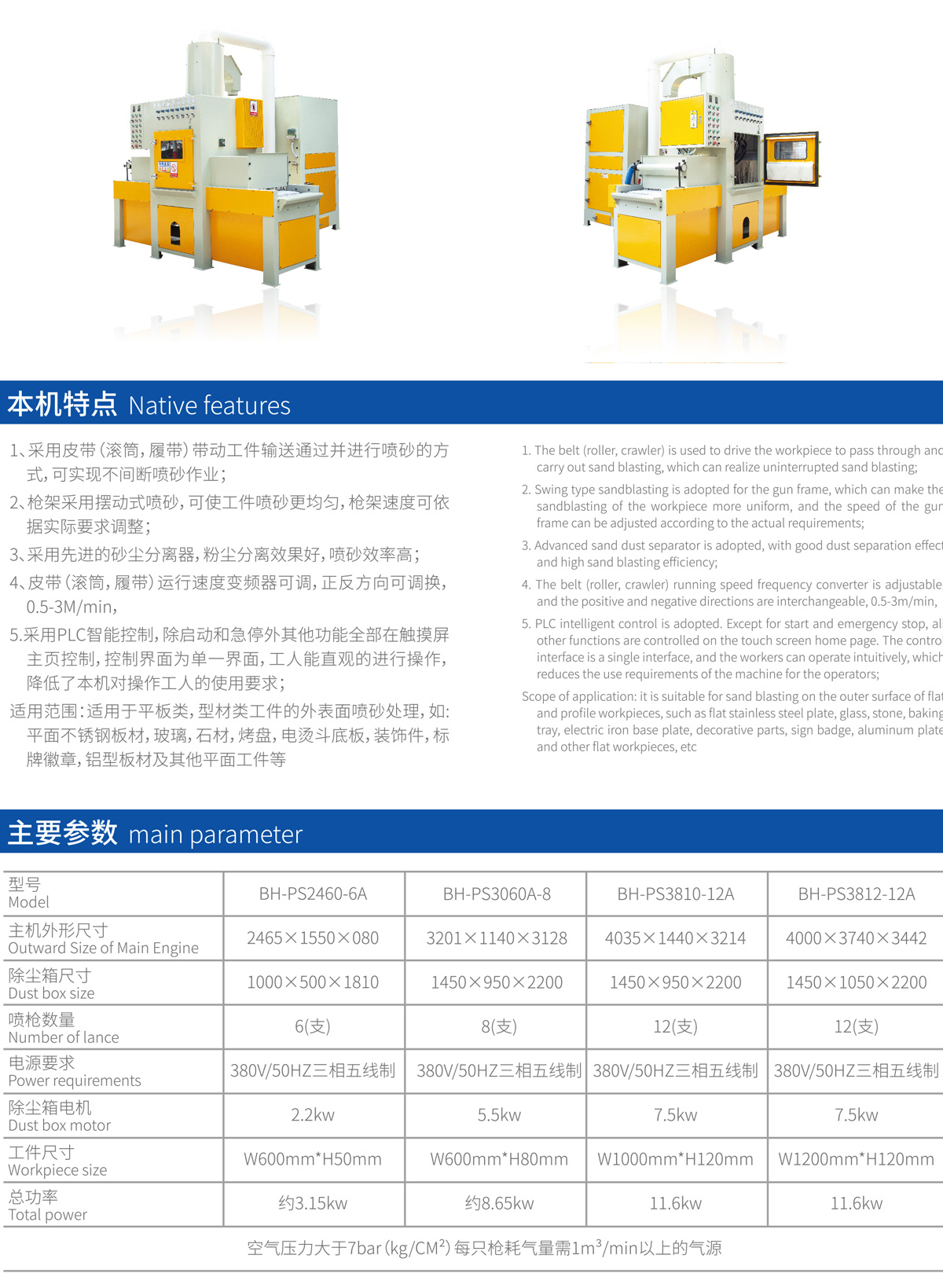 BHPS-3060-8A輸送式自動噴砂機參數及適用范圍