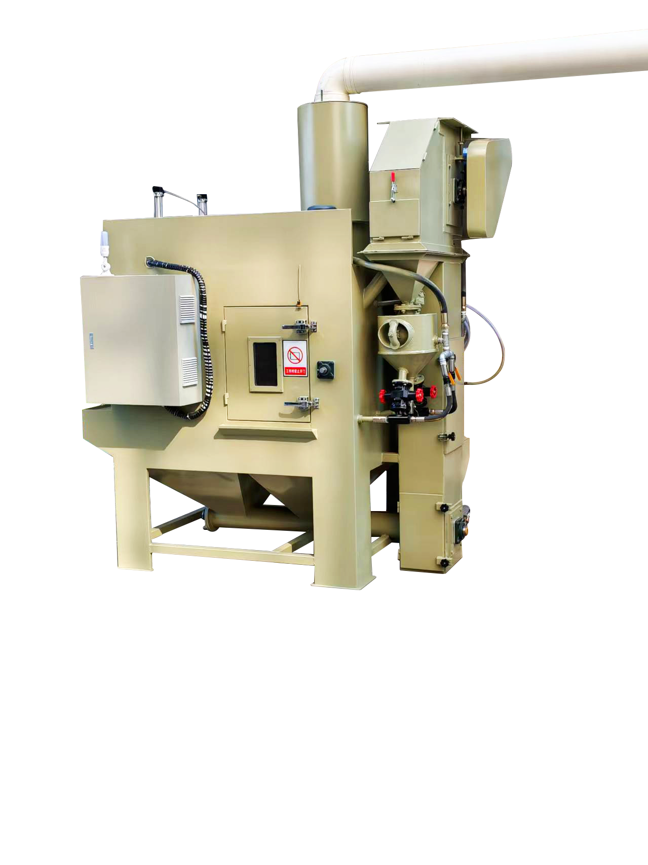 2、加壓型噴砂設計,配置壓力罐和加壓型噴槍,可噴射不銹鋼丸、鋼砂、等金屬磨料;